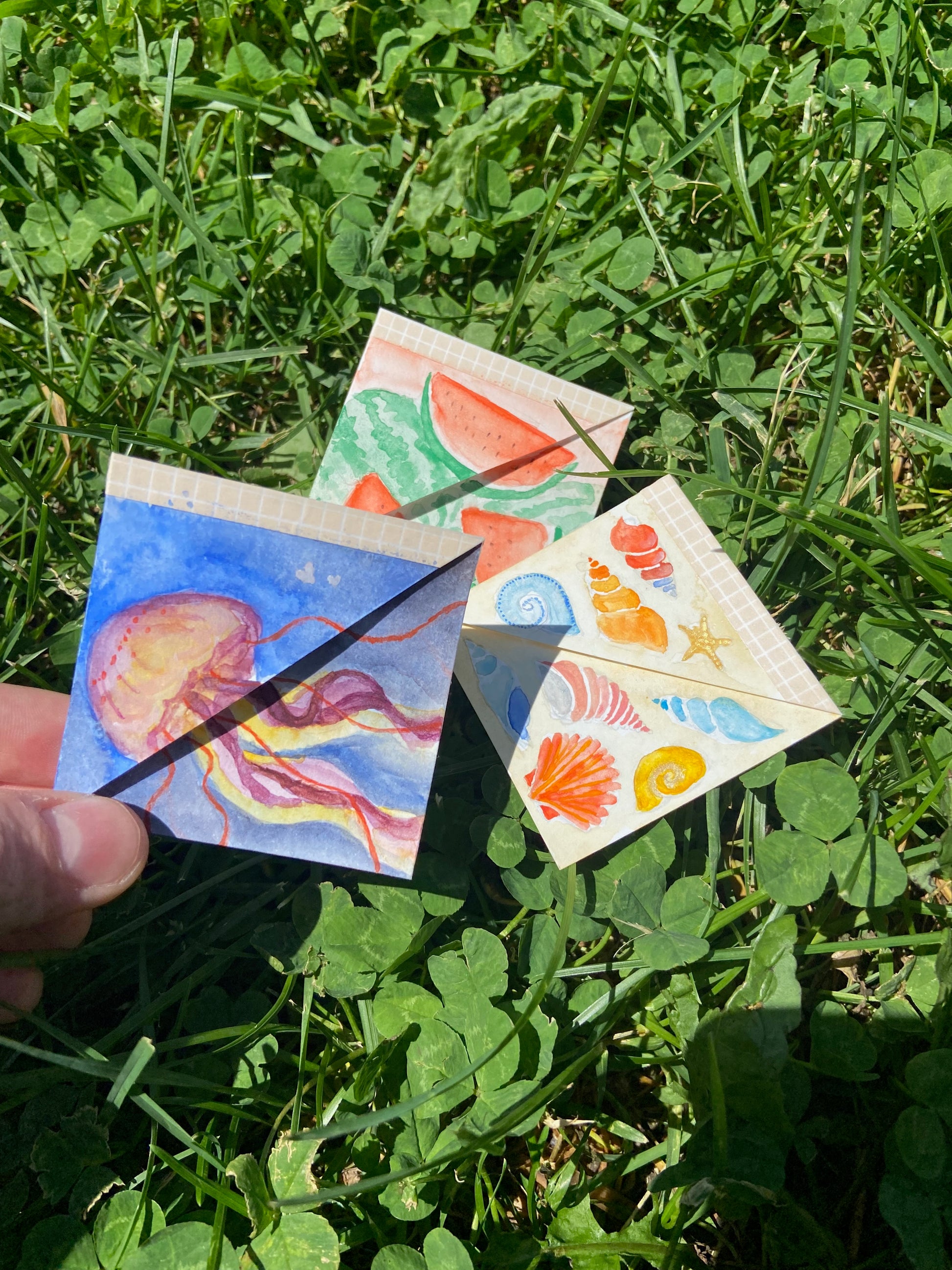 Ce marque-page d'angle créé à la main à l'aquarelle est parfait pour s'insérer dans le coin de votre page. Cette pièce artisanale créée à Montréal est une mini oeuvre d'art qui apportera une touche d'originalité et de délicatesse à vos livres.
