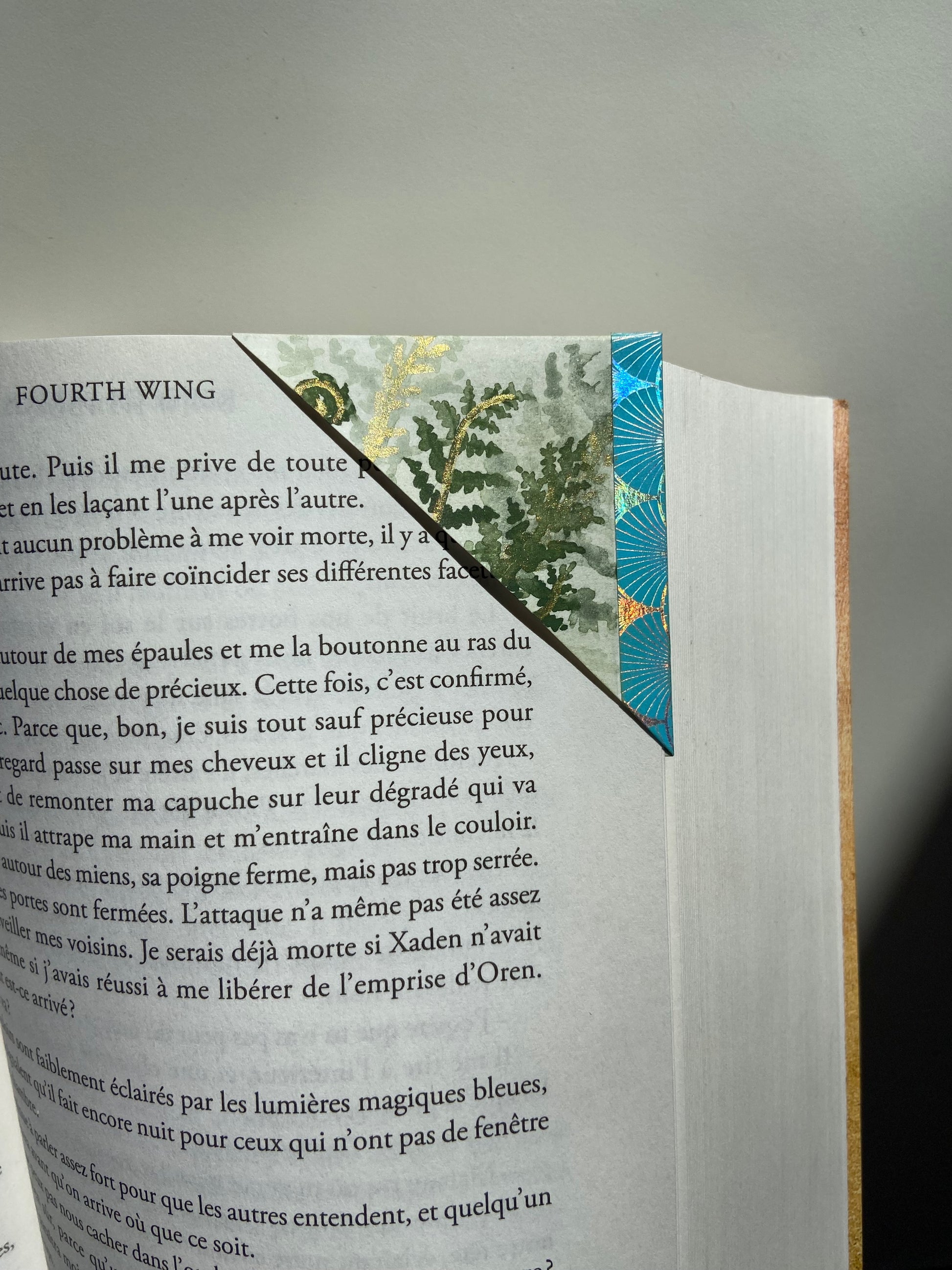 Ce marque-page d'angle créé à la main à l'aquarelle est parfait pour s'insérer dans le coin de votre page. Cette pièce artisanale créée à Montréal est une mini oeuvre d'art qui apportera une touche d'originalité et de délicatesse à vos livres.