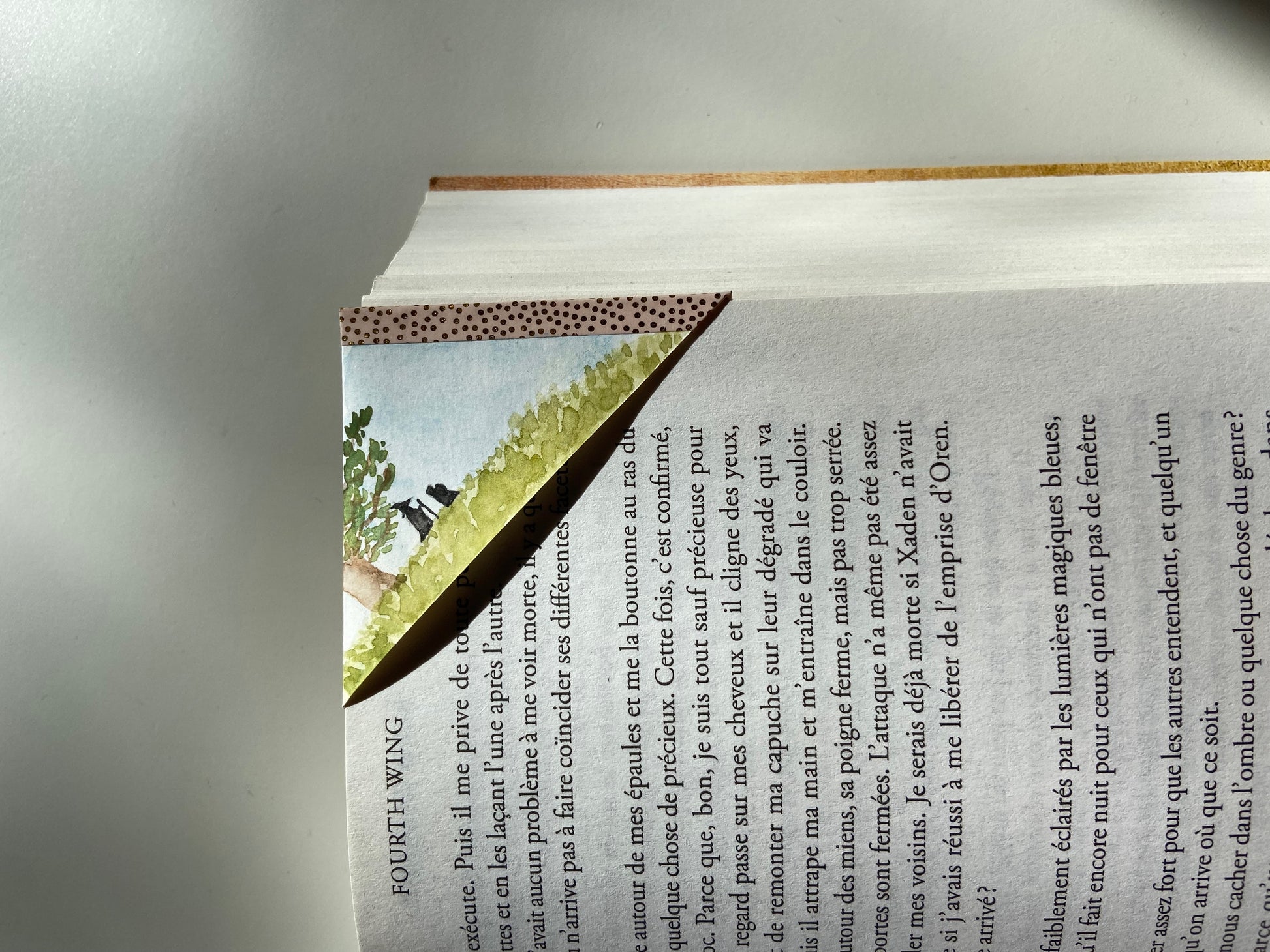 Ce marque-page d'angle créé à la main à l'aquarelle est parfait pour s'insérer dans le coin de votre page. Cette pièce artisanale créée à Montréal est une mini oeuvre d'art qui apportera une touche d'originalité et de délicatesse à vos livres.