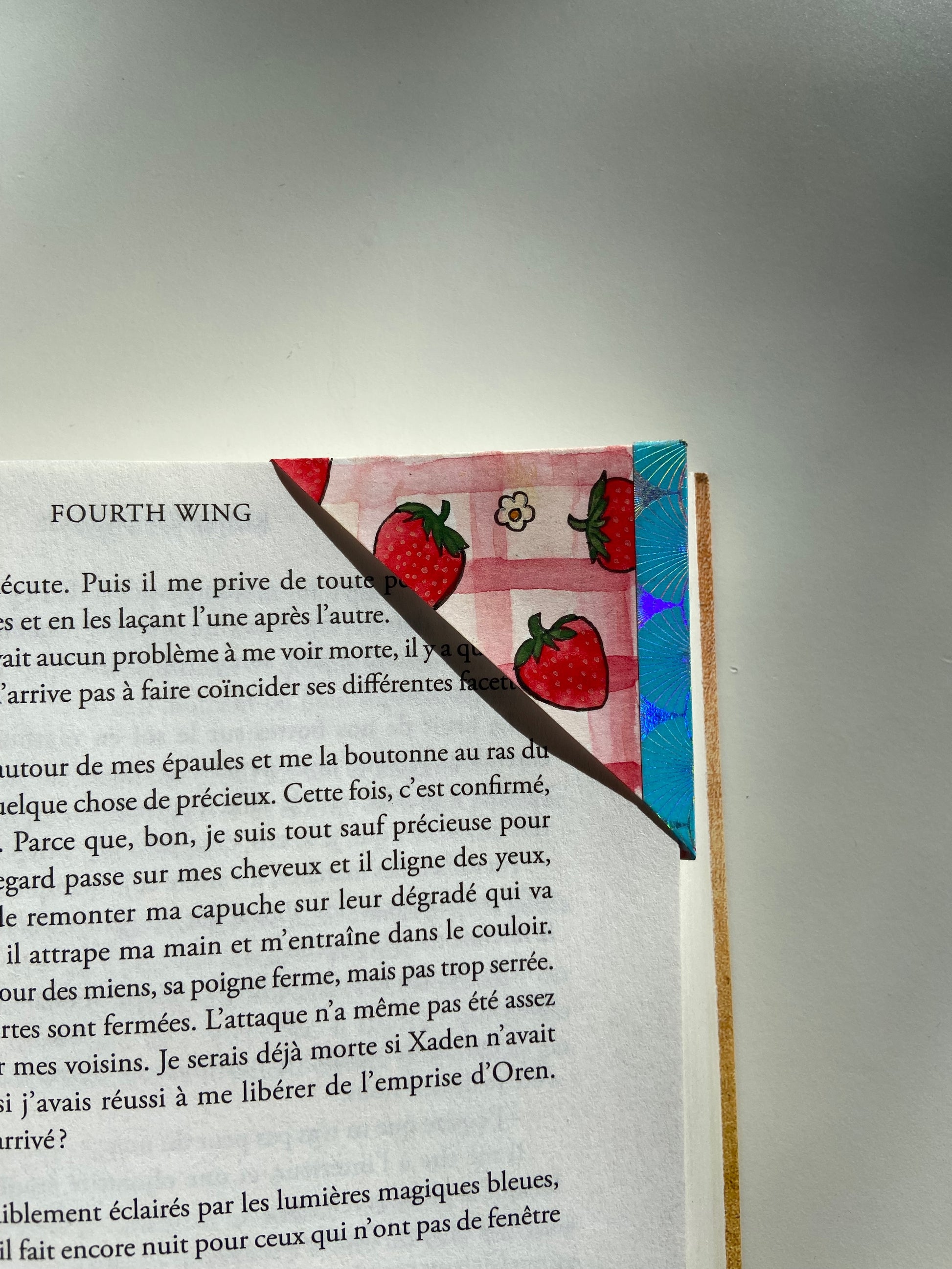 Ce marque-page d'angle créé à la main à l'aquarelle est parfait pour s'insérer dans le coin de votre page. Cette pièce artisanale créée à Montréal est une mini oeuvre d'art qui apportera une touche d'originalité et de délicatesse à vos livres.